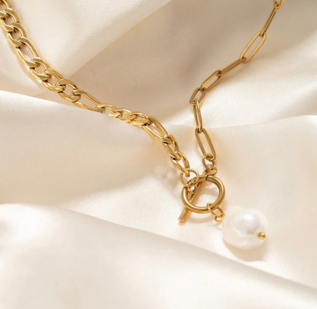 Stainless Freshwater Pearl Necklace! 18k PVD